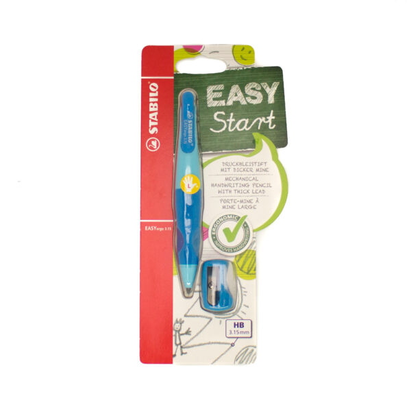 Easy Ergo Pencil Blue - Left Handed. The easy ergo is a true Starter-Pencil for small children, with different versions for left and right-handers. This ergonomic mechanical pencil has a super strong lead and soft grip zone. It comes with its own left-handed pecnil sharpener, which will only sharpen the size of lead used in this pencil. Available in four bright colour combinations, it is easily refillable and cleanly erased, and most importantly extremely easy for children to use. For improved handwriting.