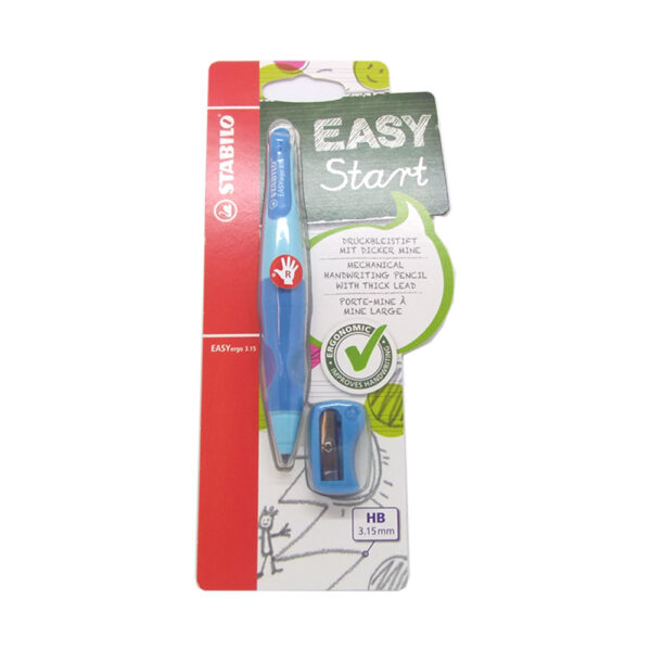 Easy Ergo Pencil Blue - Right Handed. The easy ergo is a true Starter-Pencil for small children, with different versions for left and right-handers. This ergonomic mechanical pencil has a super strong lead and soft grip zone. It comes with its own right-handed pencil sharpener, which will only sharpen the size of lead used in this pencil. It is easily refillable and cleanly erased, and most importantly extremely easy for children to use. For improved handwriting.