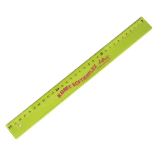 30cm Softie Flex clear ruler, with inking edge, made from extremely flexible material and scale from right to left.