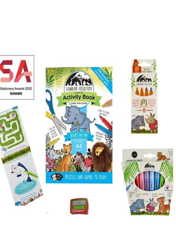 The Lionheart Collection's first story-led activity book for pre-schoolers! Go on a journey with the Lionheart family as they get ready to celebrate Benji's big day with reading, writing, colouring, drawing, cutting activities and games! Choose from 44 activities designed to help develop key motor skills, pen control, wipe clean pages to improve hand-eye coordination, letter formation activities, cutting and gluing and so much more!