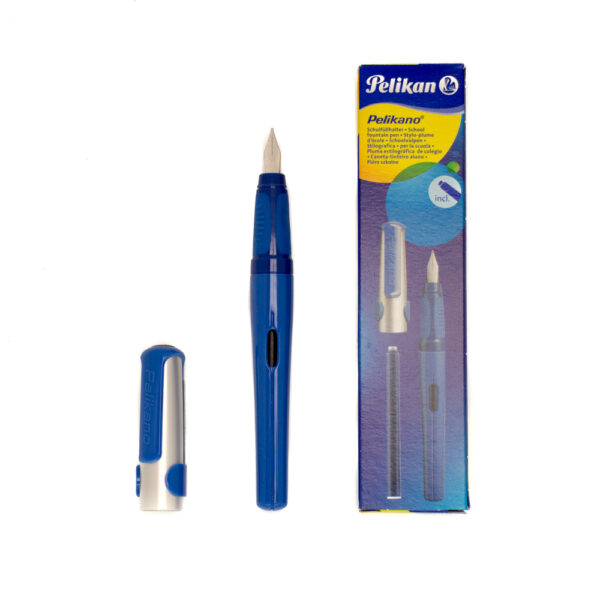 Pelikano School Pen - Blue LH. This is a new version of the Pelikano Cartridge pen specifically designed for the left-hander. The Pelikano pen is the recommended pen for left handed children as it will work whatever style of writing the child has. It has a rounded nib and gives a smooth flow of ink.