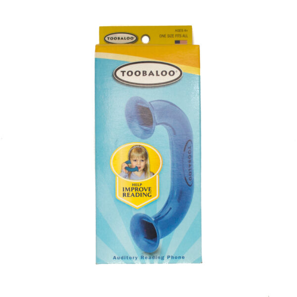 Toobaloo Right or Left handed BLUE. The Toobaloo is a phone-like device that allows children to hear themselves clearly while speaking softly into it. The design of the Toobaloo magnifies their voice allowing them to hear their sounds and words distinctly.