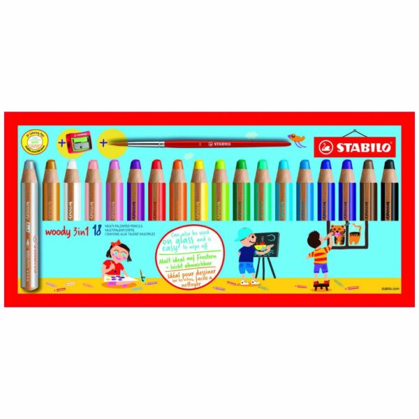 | STABILO Woody 3 in 1 - Pack 18 Pencils Right or Left handed with sharpener & brush |