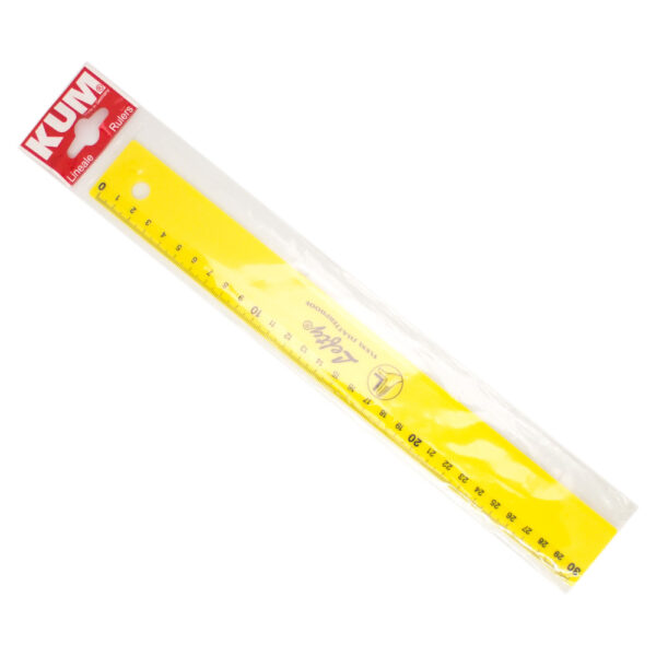 30cm plastic ruler, in yellow. Specially designed for the left-hander, with the numbers running from right to left.
