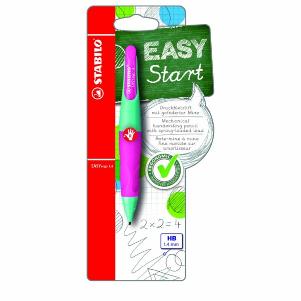 STABILO EASYergo Right Handed 1.4mm Mechanical Pencil - Turquoise/Neon Pink (Blister Pack)