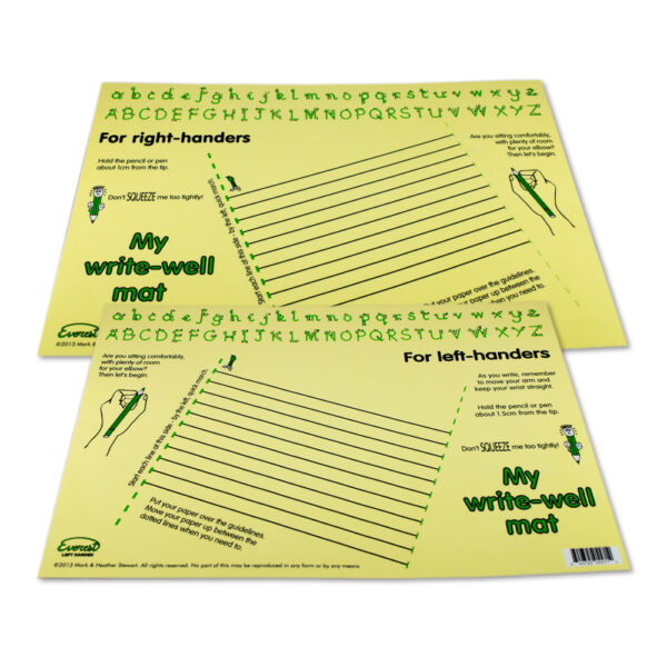 The Writewell Mat is designed to help children develop their handwriting skills, the mat contains the detailed upper and lower case alphabet, and gives easy to read guidelines for left handed children. The mat also contains information for right handed children on the reverse. The cream colour of this mat is found to be helpful for some dyslexic students or those with visual stress.